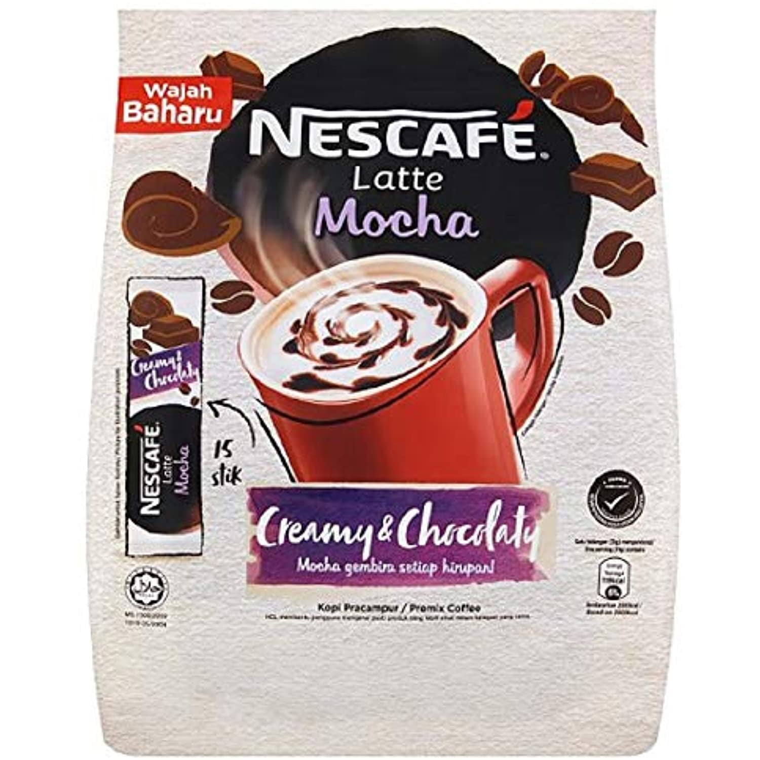 Nescafe 3 In 1 Mocha Coffee Latte - Instant Coffee Packets - Single Serve Flavored Coffee Mix (15 Sticks)