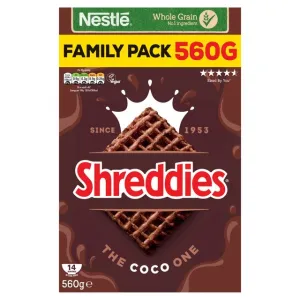 Whole Grain Wheat (80.7%), Sugar, Invert Sugar Syrup, Barley Malt Extract, Fat-Reduced Cocoa Powder (1.5%), Cocoa Powder (1.0%), Cocoa Mass, Salt, Bulking Agent: Calcium Carbonate, Molasses, Flavouring, Iron, Vitamin B3, B5, B9, B6, B2 .