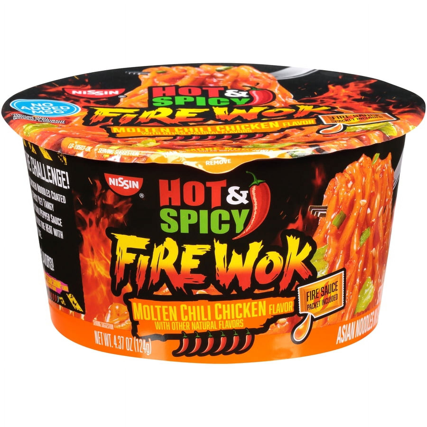 Nissin Foods Hot & Spicy Fire Wok Stir Fry Asian Noodles, Molten Chili Chicken Flavor, 4.37 oz Bowl, Shelf-Stable