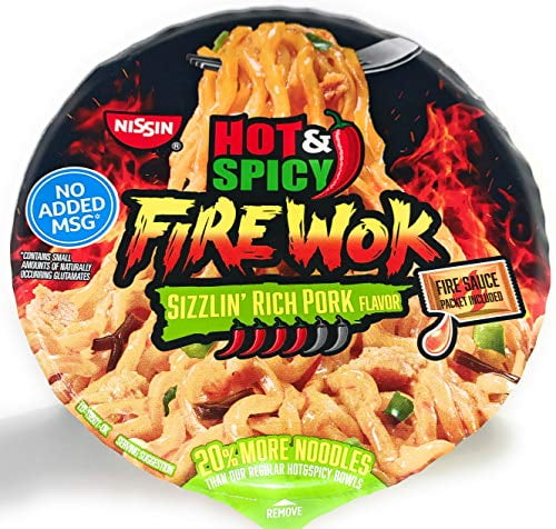 Nissin Hot & Spicy Fire Wok, Sizzlin' Rich Pork, 4.37 Ounce, Pack of 2