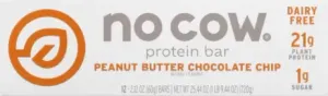 No Cow Protein Bar, Peanut Butter Chocolate Chip, 20g Plant-Based Protein, Keto Friendly, 12ct