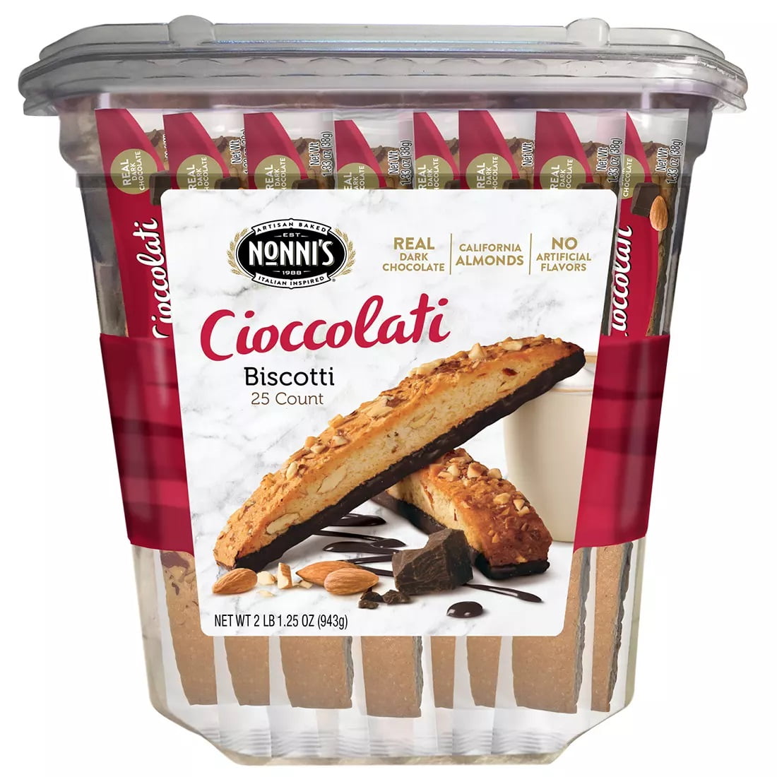 Nonni's Biscotti Value Pack with Larger Cookies, Cioccolati, 25Count, Red (718605000000), 33.25 Ounce is available at 2 retailers