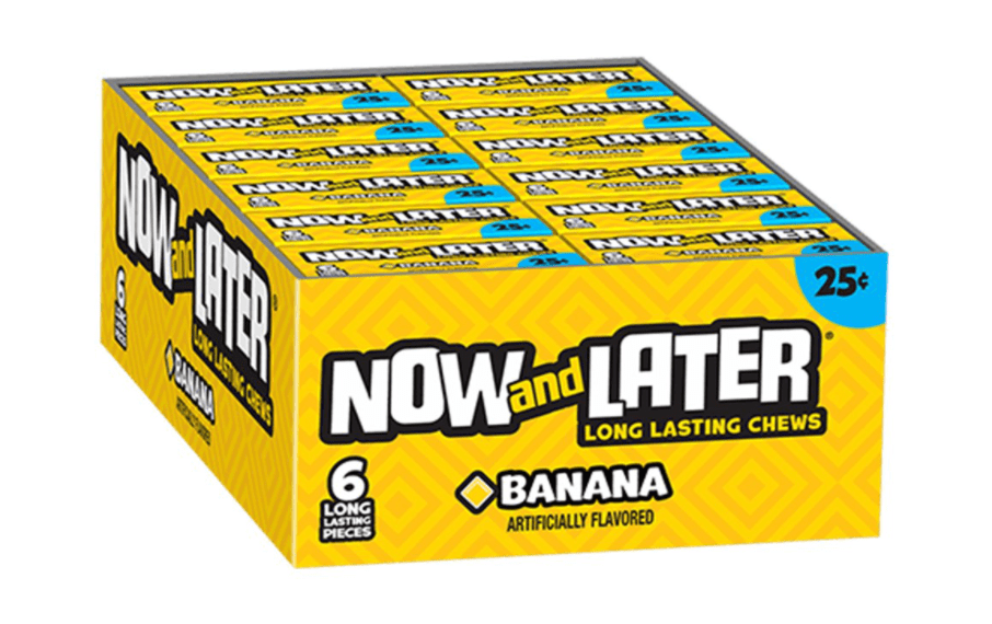 Now and Later Banana Flavored Candy 6 piece bars ( pack of 24 )