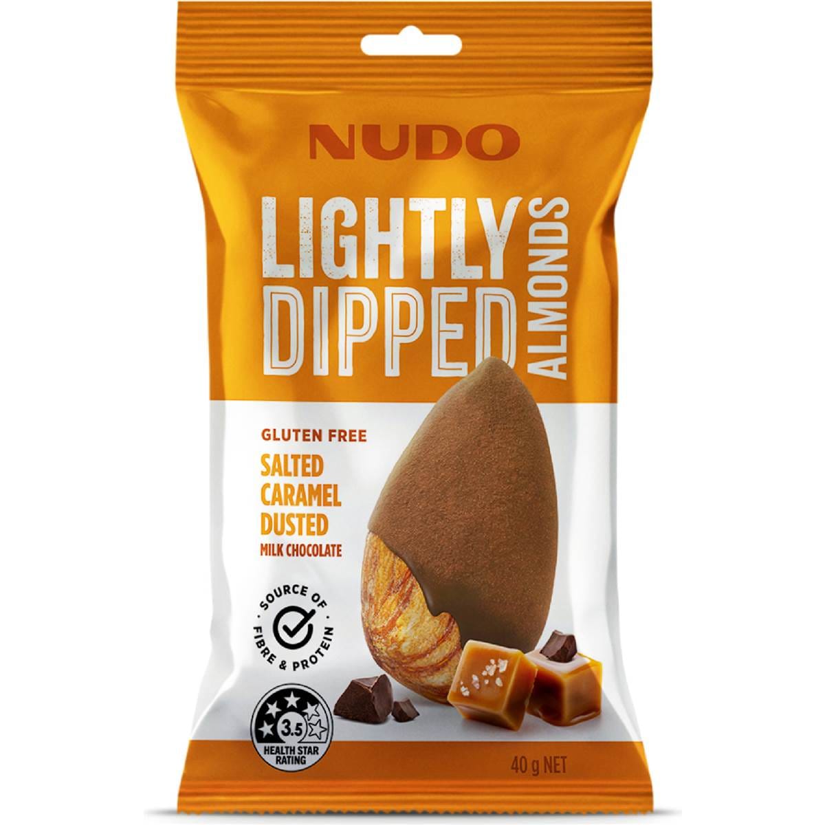Nudo Lightly Dipped Almonds Salted Caramel Dusted Milk Chocolate 40g