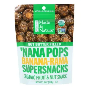 NUT BUTTER FILLED BANANA-RAMA ORGANIC UNBAKED ENERGY BALLS SUPERSNACKS, BANANA-RAMA