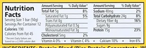 PROTEIN BLEND (RICE PROTEIN CONCENTRATE, WHEY PROTEIN CRISPS [WHEY PROTEIN ISOLATE, WHEY PROTEIN CONCENTRATE, TAPIOCA STARCH, CALCIUM CARBONATE, SUNFLOWER LECITHIN], WHEY PROTEIN ISOLATE), ORGANIC TAPIOCA SYRUP, CASHEWS, PREBIOTIC TAPIOCA FIBER, ORGANIC AGAVE SYRUP, SUNFLOWER OIL, NATURAL FLAVOR, DRIED LEMON, SUNFLOWER LECITHIN, CITRIC ACID.