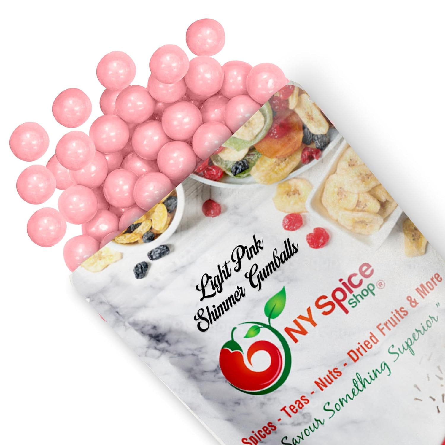 NY SPICE SHOP Light Pink Shimmer Gumballs - 08 Ounce - Tutti Frutti Flavor