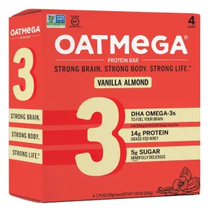 Oatmega Grass-Fed Whey Protein Bar, Vanilla Almond, 14g Protein, 4 Ct
