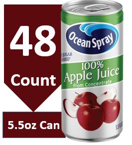 Ocean Spray 100% Apple Juice, Apple Juice ,5.5 Fl Oz, 48 Count Cans is available at 1 retailer