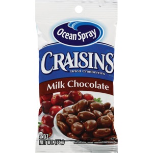 OCEAN SPRAY, CRAISINS DRIED CRANBERRIES BRAND, MILK CHOCOLATE COVERED SWEETENED DRIED CRANBERRIES