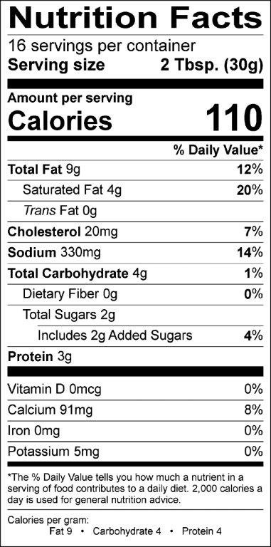 PASTEURIZED PROCESS CHEESE FOOD WITH CHIPOTLE SEASONING (CULTURED MILK, WATER, CREAM, GREEN JALAPENO PEPPERS, RED JALAPENO PEPPERS, SKIM MILK, SODIUM PHOSPHATES, CHIPOTLE CHILI PEPPER, NATURAL FLAVOR, SORBIC ACID (A PRESERVATIVE), ANNATTO COLOR, ENZYMES), SALAD DRESSING (SOYBEAN OIL, WATER, HIGH FRUCTOSE CORN SYRUP, CORN SYRUP, DISTILLED VINEGAR, MODIFIED FOOD STARCH, EGG YOLKS, SALT, CIDER VINEGAR, POTASSIUM SORBATE (PRESERVATIVE), SPICE, XANTHAN GUM AND NATURAL FLAVORS), PIMIENTOS (PIMIENTOS, WATER AND CITRIC ACID).