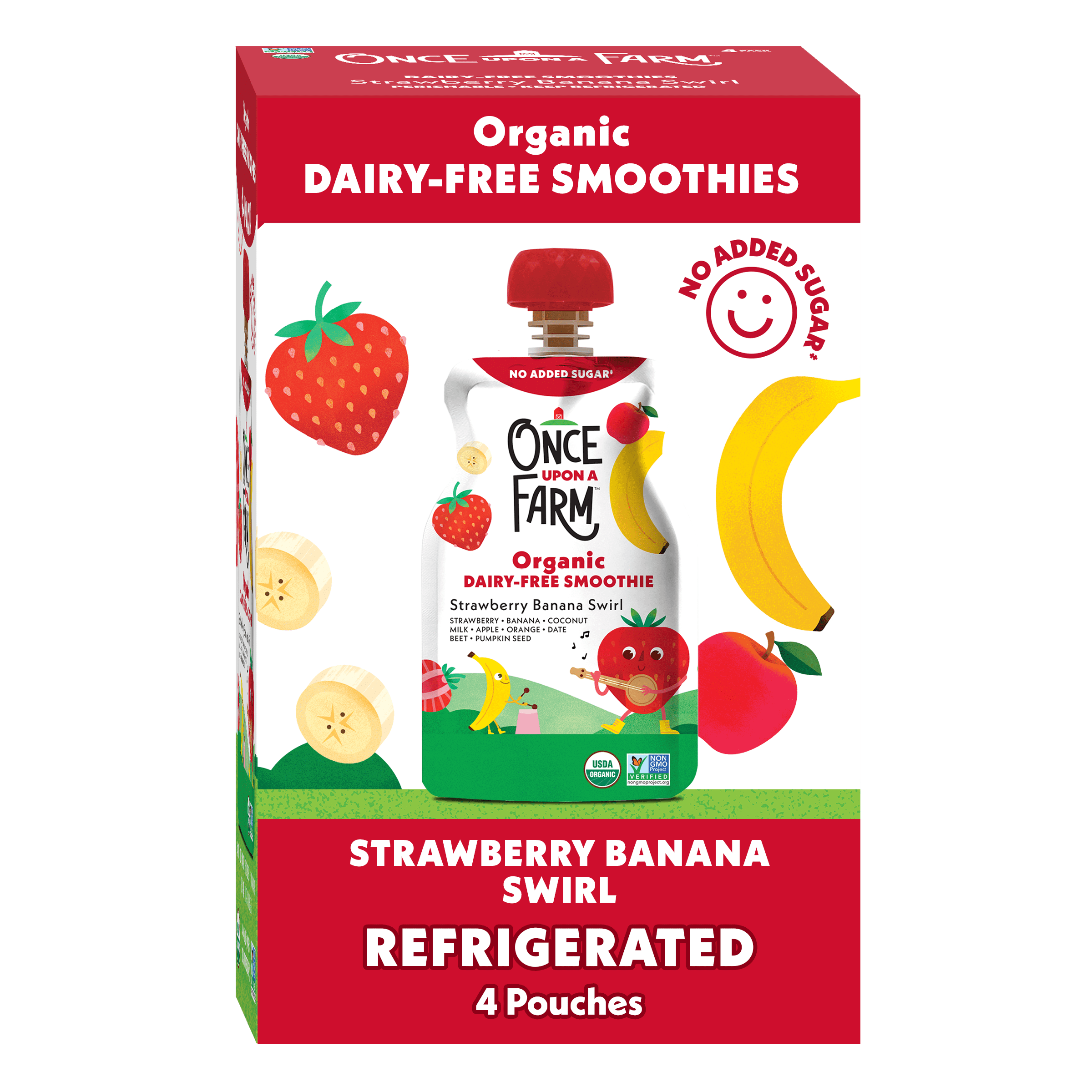 Once Upon a Farm Organic Refrigerated Kids' Snack Strawberry Banana Swirl Dairy-Free Smoothie, 4oz Pouch (4 Pack)