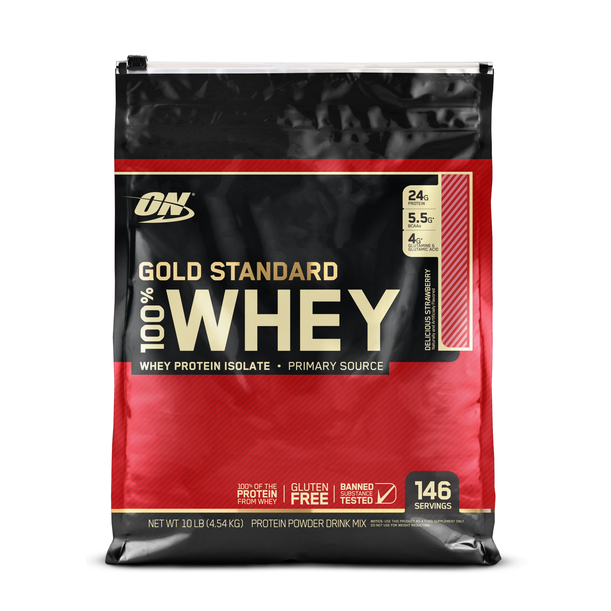 Optimum Nutrition Gold Standard 100% Whey Protein Isolates Delicious Strawberry -- 10 lbs
