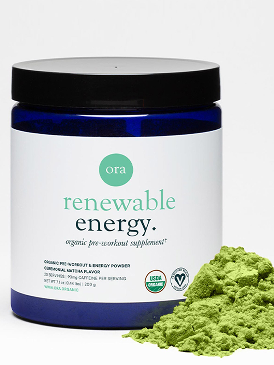 ORA Renewable Energy Organic Pre-Workout Supplement Powder, Ceremonial Matcha Flavor