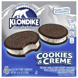 OREO FROZEN VANILLA DAIRY DESSERT WITH OREO COOKIE PIECES BETWEEN TWO OREO WAFERS SANDWICHES, OREO