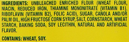 Unbleached Enriched Flour (Wheat Flour, Niacin, Reduced Iron, Thiamine Mononitrate (Vitamin B1), Riboflavin (Vitamin B2), Folic Acid), Sugar, Canola, Palm Oil, High Fructose Corn Syrup, Salt, Baking Soda, Soy Lecithin, Artificial Flavor, Natural Flavor