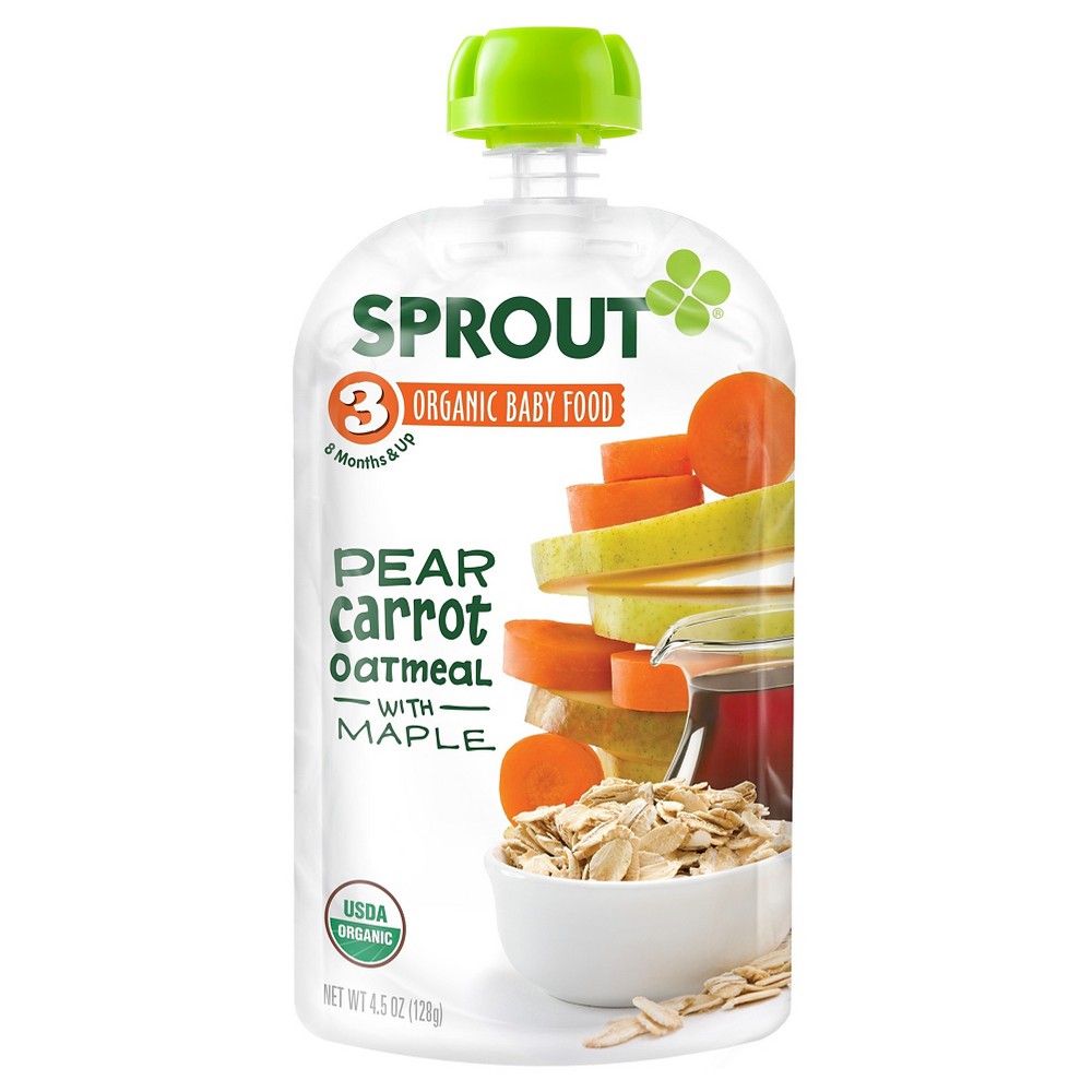 Organic Pears, Cooked Organic Rolled Oats (Water, Organic Rolled Oats), Organic Carrots, Organic Maple Syrup, Organic Allspice, Organic Lemon Juice