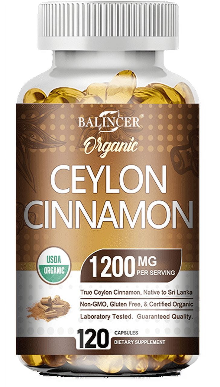 Organic Ceylon Cinnamon Supplement 1200mg - USDA Certified Organic Cinnamon - Non-GMO, Gluten Free Cinnamon Powder, Antioxidant Cinnamon Pills - 120 Softgels
