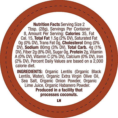 ORGANIC LENTILS (ORGANIC BLACK LENTILS, WATER), ORGANIC ONION, ORGANIC EXTRA VIRGIN OLIVE OIL, ORGANIC GARLIC, ORGANIC LIME JUICE, SEA SALT, ORGANIC HABANERO POWDER.