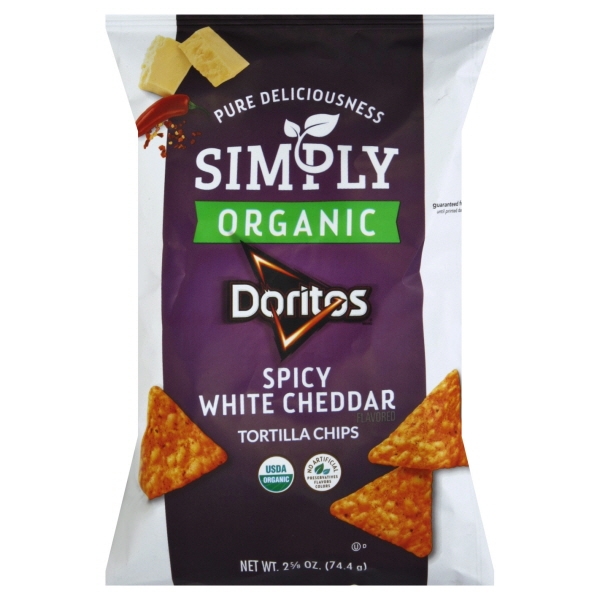 ORGANIC SPICY WHITE CHEDDAR FLAVORED TORTILLA CHIPS, SPICY WHITE CHEDDAR