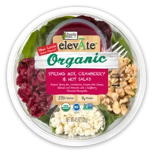 ORGANIC SPRING MIX (ORGANIC BABY LETTUCES [LOLLO ROSSA, TANGO, RED AND GREEN OAK, RED AND GREEN ROMAINE, RED LEAF, GREEN LEAF], ORGANIC BABY GREENS [TATSOI, MIZUNA, RED AND GREEN CHARD, RED AND GREEN MUSTARD, FRISEE, ARUGULA], ORGANIC BABY SPINACH, ORGANIC RADICCHIO, ORGANIC KALE, INGREDIENTS MAY VARY BY SEASON), ORGANIC RASPBERRY FLAVORED VINAIGRETTE (WATER, ORGANIC CANE SUGAR, ORGANIC RED WINE VINEGAR, ORGANIC RASPBERRY FLAVORED JUICE CONCENTRATE BLEND [ORGANIC APPLE, ORGANIC PEAR, ORGANIC RASPBERRY AND ORGANIC ELDERBERRY JUICE CONCENTRATES, ORGANIC FLAVOR, CITRIC ACID], ORGANIC APPLE JUICE CONCENTRATE, SALT, XANTHAN GUM, ORGANIC FLAVOR), ORGANIC FETA CHEESE (ORGANIC PASTEURIZED MILK, SALT, CHEESE CULTURES, ENZYMES, CELLULOSE POWDER [TO PREVENT CAKING]), ORGANIC CRANBERRIES (ORGANIC CRANBERRIES, ORGANIC SUGAR, ORGANIC SUNFLOWER OIL), ORGANIC WALNUTS, ORGANIC ALMONDS.