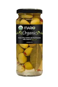 ORGANIC STUFFED GREEN OLIVES WITH REAL PIMIENTO AND A HINT OF OLIVE OIL, REAL PIMIENTO AND A HINT OF OLIVE OIL