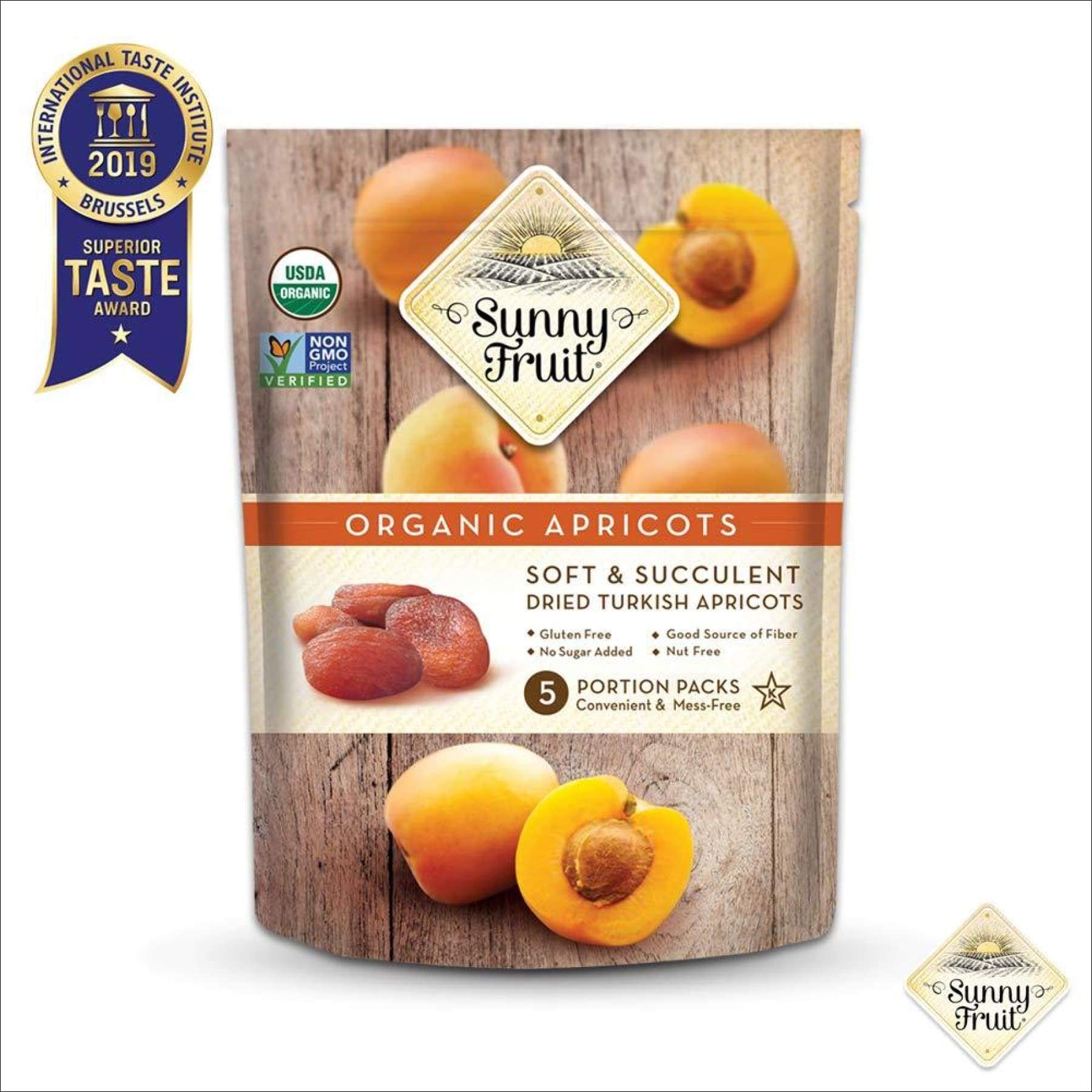 ORGANIC Turkish Dried Apricots - Sunny Fruit - (5) 1.76oz Portion Packs per Bag | Purely Apricots - NO Added Sugars, Sulfurs or Preservatives | NON-GMO, VEGAN, HALAL & KOSHER