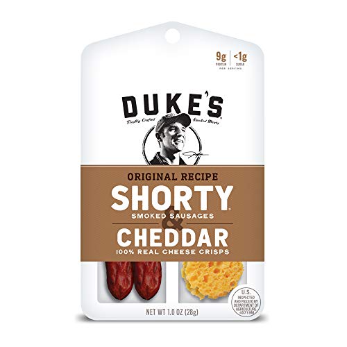SMOKED SAUSAGE (PORK, LESS THAN 2% OF: SALT, CHOPPED PARSLEY, CANE SUGAR, SPICES, CELERY POWDER (CELERY POWDER, SEA SALT), VINEGAR, CITRIC ACID, ROASTED GARLIC, PALM OIL, NATURAL FLAVORS. MADE WITH BEEF COLLAGEN CASING [CARAMEL COLOR, CARMINE], CHEDDAR CHEESE CRISP (CHEDDAR CHEESE [PASTEURIZED MILK, CHEESE CULTURES, SALT, ENZYMES, ANNATTO {COLOR}, VITAMIN A PALMITATE]).