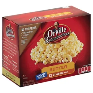 Orville Redenbacher's Butter Popcorn, available in a 32.9 oz classic bag with 12 count, is a leading brand of microwave popcorn. Made with real butter and high-quality non-GMO popcorn kernels, this popcorn is known for its great taste and buttery flavor. While some people find the popcorn to be tasty, others may perceive a funky smell. Nonetheless, Orville Redenbacher's remains a popular choice among popcorn enthusiasts who appreciate the quality and flavor of this product.