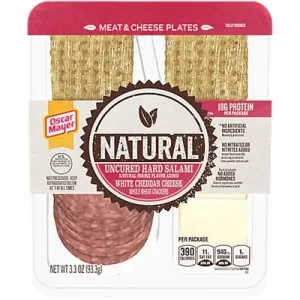 Oscar Mayer Natural Uncured Hard Salami, White Cheddar Cheese & Whole Wheat Crackers Meat & Cheese Plate, 3.3 oz Box