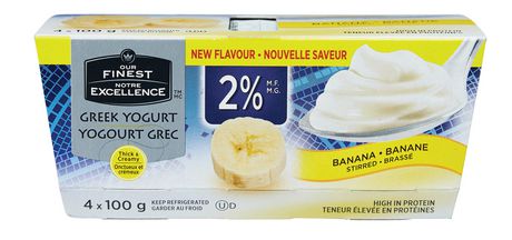 Greek Yogurt (Skim Milk, Cream, Milk Protein, Active Bacterial Culture), Banana Fruit Preparation (Sugar, Water, Banana Puree (Citric Acid, Ascorbic Acid), Flavour, Rice Starch, Pectin, Lemon Juice Concentrate, Colour), Contains: Milk