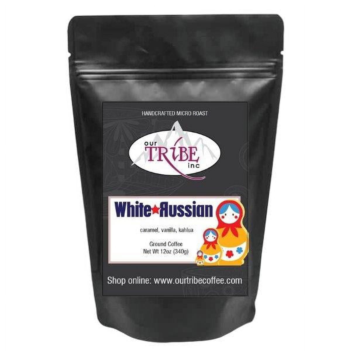 Our Tribe's Medium Roast, White Russian- Caramel, Vanilla and Kahlua flavored coffee, medium roast and 100% Arabica.