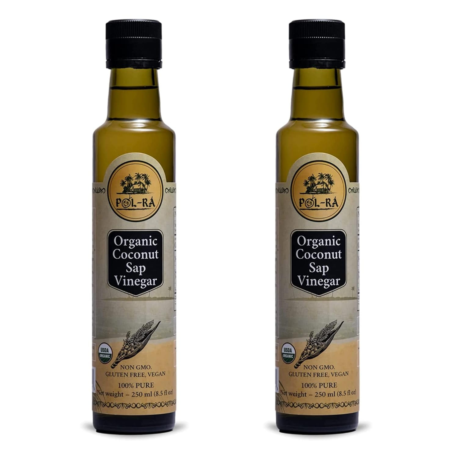 P L-RA Organic 100% Natural Coconut Sap Vinegar - Sodium Free - Vegan, Paleo & Keto - Low Glycemic - Marinade Substitute - Gluten Free - Soy Free - Kosher - 8.5 oz (50 Servings) - Pack of 2
