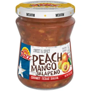 Pace Salsa, Peach Mango Jalapeño Salsa, Medium Salsa, Perfect for Taco Night, 15 Ounce Glass Jar