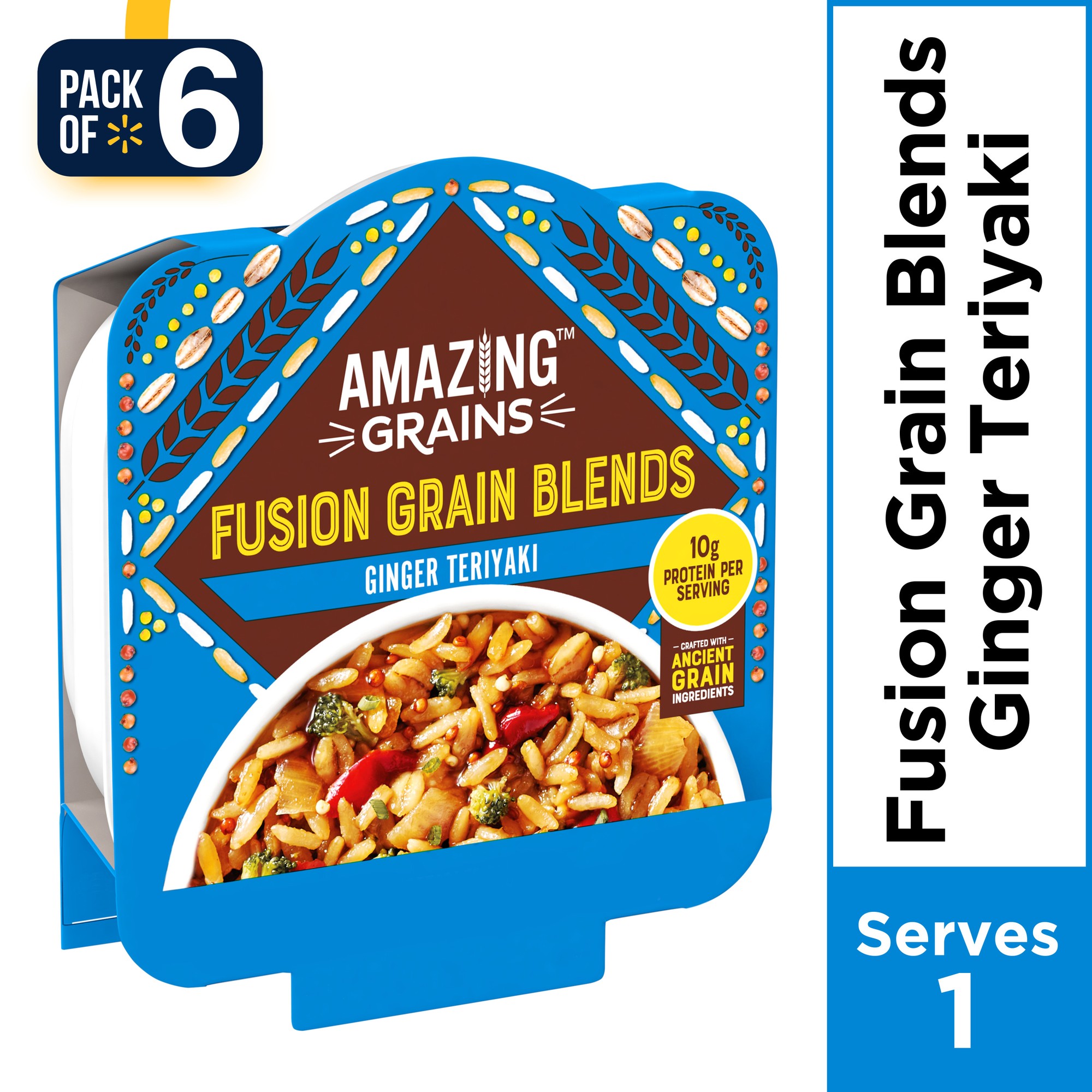 (Pack of 6) Amazing Grains Fusion Grain Blends Ginger Teriyaki, 3.85 oz Bowl