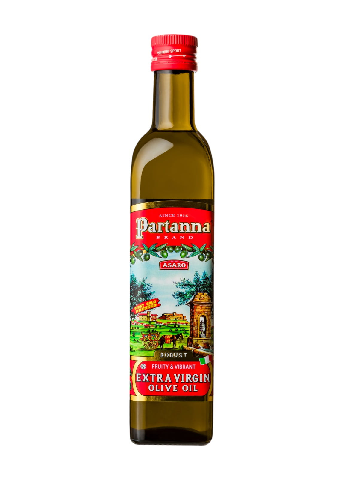 Partanna Robust Extra Virgin Olive Oil - Premium Castelvetrano Olive Oil - Harvested in Sicily - Pure Authentic Italian - Monovarietal - Rich in Flavor - First Cold Pressed - 16.9oz (500 ML) Glass