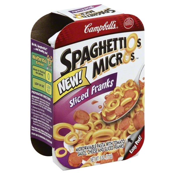 WATER, TOMATO PUREE (WATER, TOMATO PASTE), ENRICHED PASTA PRODUCT WITH ADDED CALCIUM AND VITAMIN D (WHEAT FLOUR, CALCIUM PHOSPHATE, NIACIN, FERROUS SULFATE, THIAMINE MONONITRATE, RIBOFLAVIN, FOLIC ACID, VITAMIN D)**, CHICKEN AND PORK FRANKFURTERS MADE WITH CHICKEN, PORK AND BEEF (MECHANICALLY SEPARATED CHICKEN, PORK, WATER, CORN SYRUP, SALT, BEEF, MODIFIED FOOD STARCH, DEXTROSE, ASCORBIC ACID, SODIUM NITRITE, NATURAL FLAVORS), HIGH FRUCTOSE CORN SYRUP, MODIFIED FOOD STARCH, CONTAINS LESS THAN 2% OF: PREPARED MUSTARD (DISTILLED VINEGAR, WATER, MUSTARD SEED, SALT, TURMERIC, PAPRIKA, SPICE, DEHYDRATED GARLIC), ENZYME MODIFIED CHEDDAR CHEESE (CHEDDAR CHEESE [CULTURED MILK, SALT, ENZYMES, CALCIUM CHLORIDE], WATER, DISODIUM PHOSPHATE, ENZYMES), SALT, CARROT JUICE CONCENTRATE, FLAVORING, CITRIC ACID, ENZYME MODIFIED BUTTER, RECONSTITUTED SKIM MILK, MONOPOTASSIUM PHOSPHATE, DEHYDRATED GARLIC, PAPRIKA EXTRACT, ONION EXTRACT.