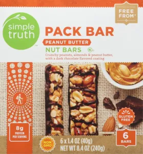 PEANUT BUTTER CRUNCHY PEANUTS, ALMONDS & PEANUT BUTTER, WITH A DARK CHOCOLATE FLAVORED COATING NUT PACK BARS, PEANUT BUTTER