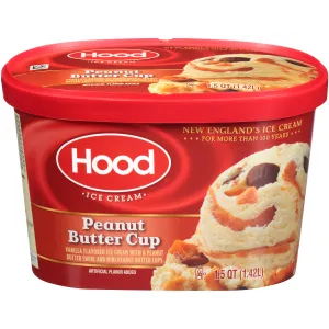 PEANUT BUTTER CUP VANILLA FLAVORED ICE CREAM WITH A PEANUT BUTTER SWIRL AND MINI PEANUT BUTTER CUPS, PEANUT BUTTER CUP
