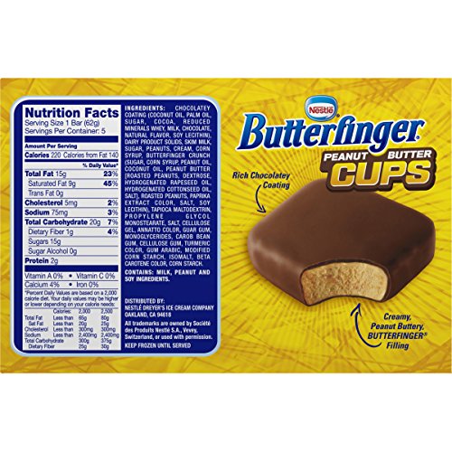 PEANUT BUTTER CUPS BUTTERFINGER FLAVORED FROZEN DAIRY DESSERT BARS WITH A CHOCOLATEY COATING, PEANUT BUTTER CUPS