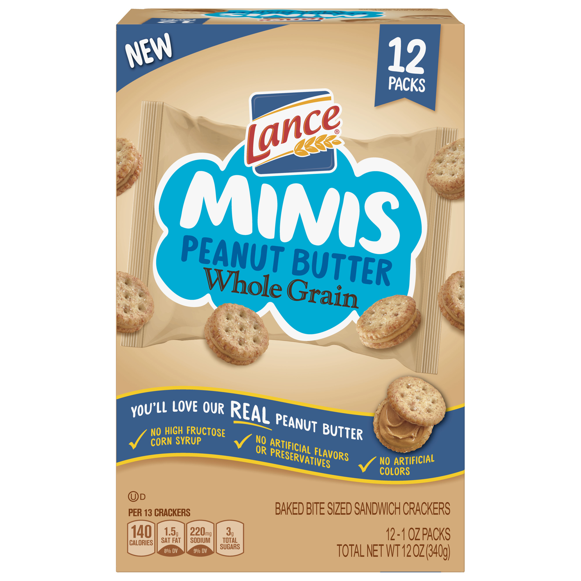 PEANUT BUTTER WHOLE GRAIN MINIS BAKED BITE SIZED SANDWICH CRACKERS, PEANUT BUTTER