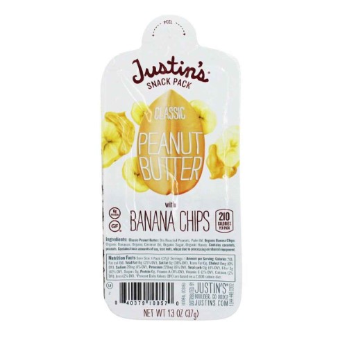 CLASSIC PEANUT BUTTER: DRY ROASTED PEANUTS, PALM OIL. ORGANIC BANANA CHIPS: ORGANIC BANANAS, ORGANIC COCONUT OIL, ORGANIC SUGAR, ORGANIC HONEY.