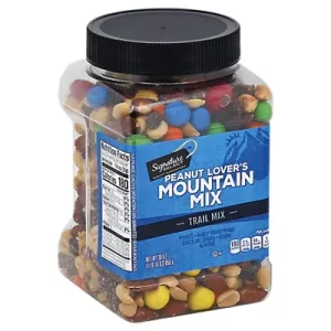 PEANUT LOVER'S MOUNTAIN MIX PEANUTS, M&M'S PEANUT CHOCOLATE CANDIES, RAISINS, ALMONDS TRAIL MIX, PEANUT LOVER'S MOUNTAIN MIX