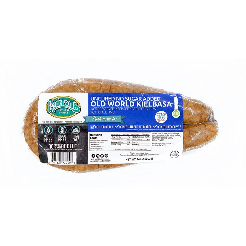 PEDERSON'S UNCURED NO SUGAR ADDED OLD WORLD KIELBASA, 14 OZ