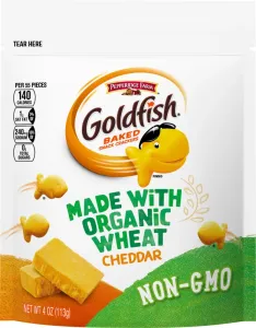 Pepperidge Farm Goldfish Made with Organic Wheat Cheddar Crackers, 4 oz. Re-sealable Bag