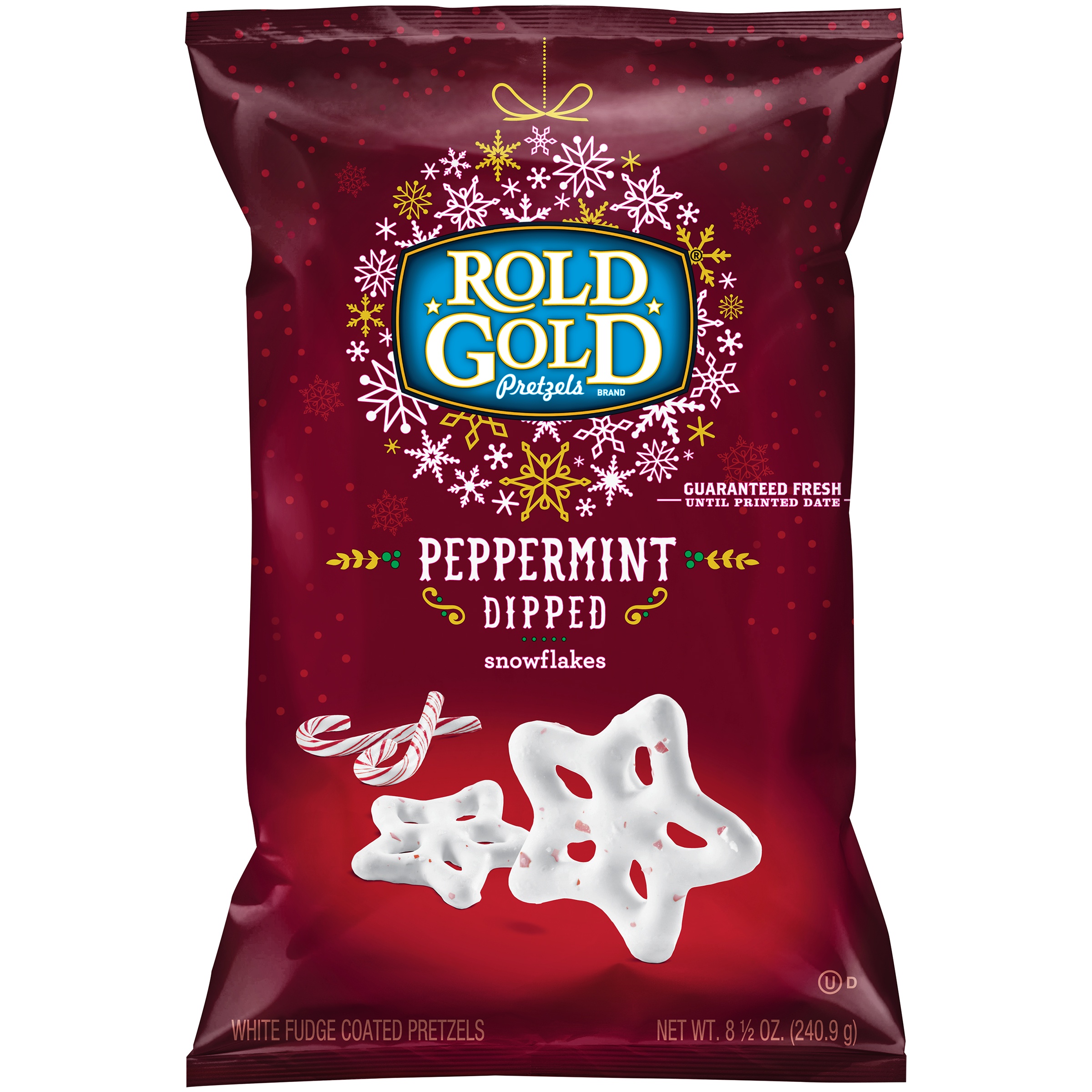 PEPPERMINT DIPPED SNOWFLAKES WHITE FUDGE COATED PRETZELS, PEPPERMINT