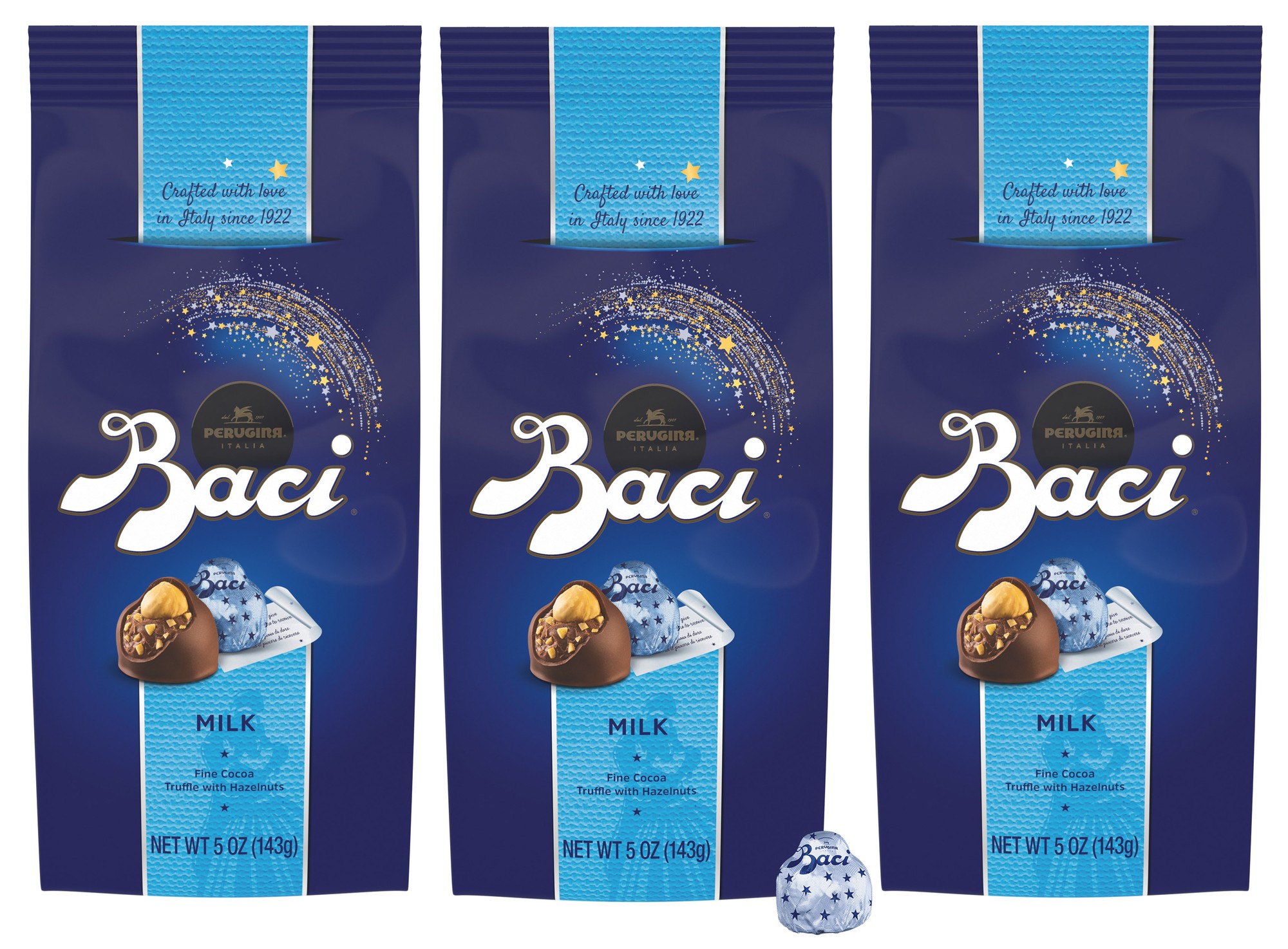 Perugina Baci Milk Praline with Whole and Chopped Hazelnuts -- 5 oz Each / Pack of 3