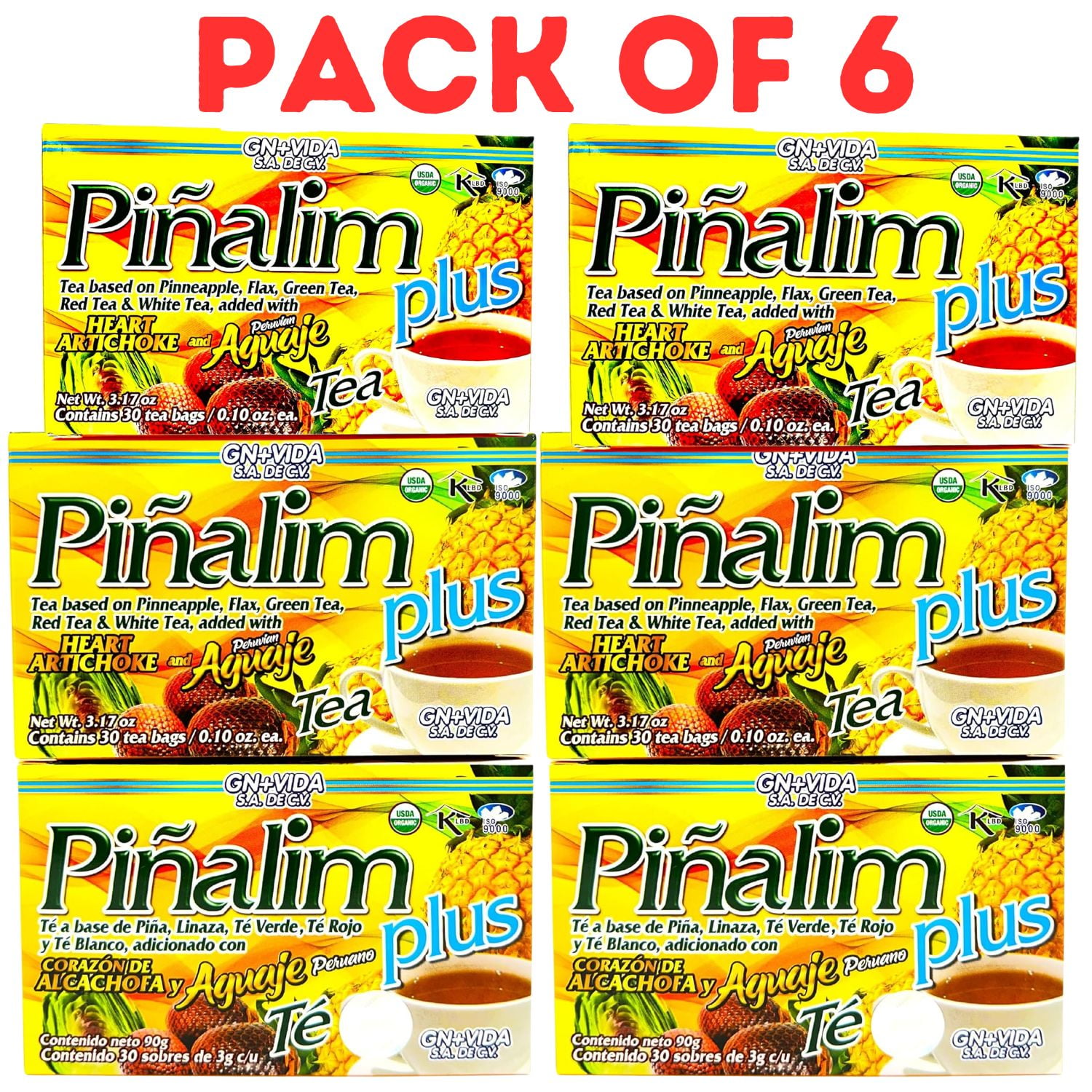 Pinalim Plus Tea Enhanced with Aguaje Peruano and Artichoke Heart la formula Alcachofa Mas Fuerte Healthy Antioxidant Formula, Caffeine Free All Natural Cleanse Digestive Tea - Pack of 6