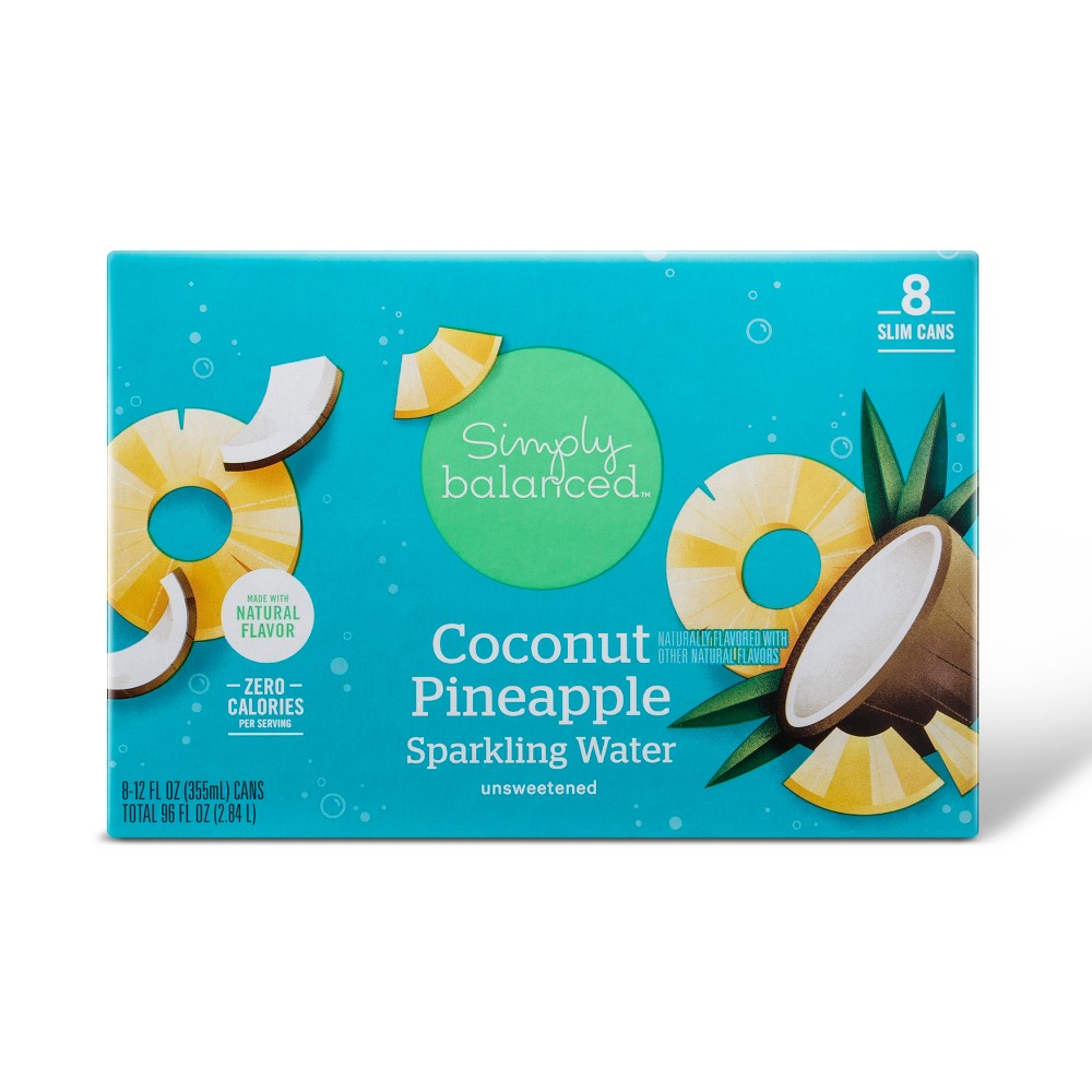 Pineapple Coconut Sparkling Water - 8pk/12 Fl Oz Cans - Simply Balanced™