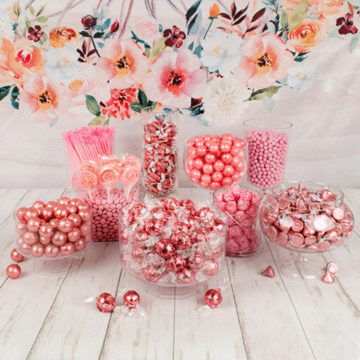 Pink Candy Buffet - (Approx 14lbs) Includes Hershey's Kisses, Sixlets,Gumballs, Dum Dum Lollipops, Frooties & More